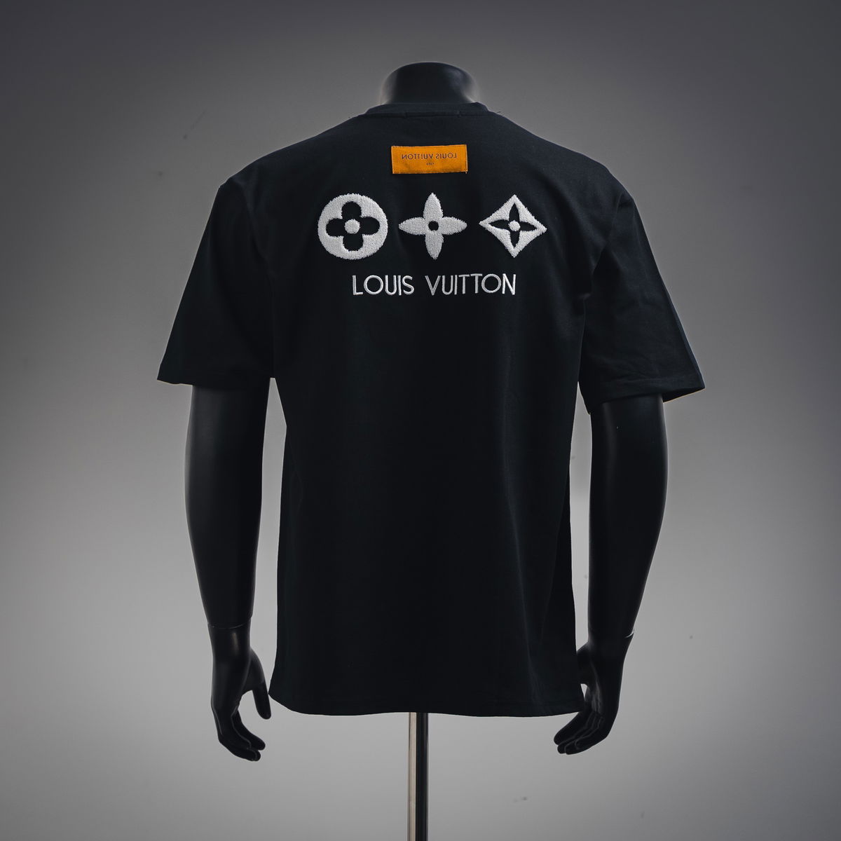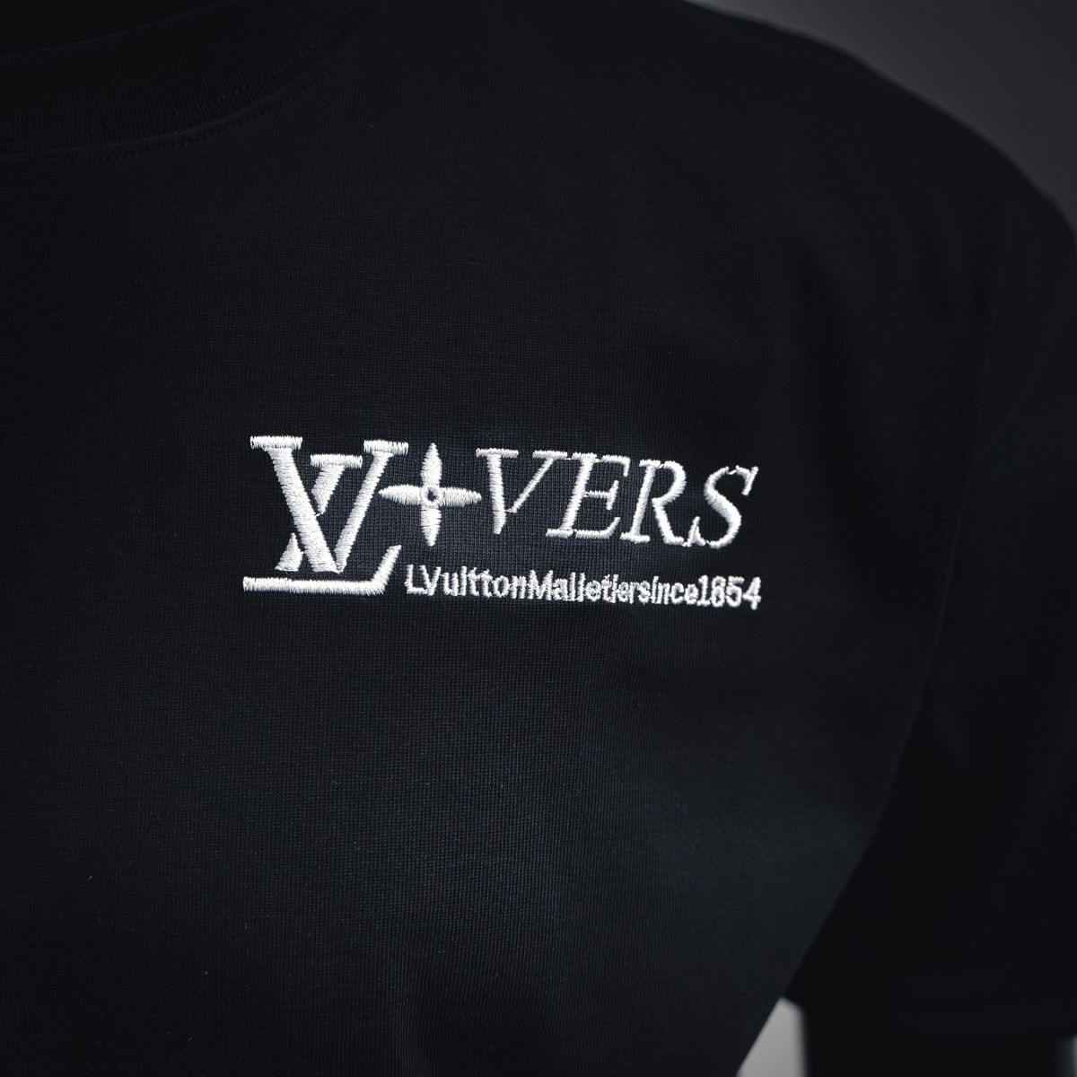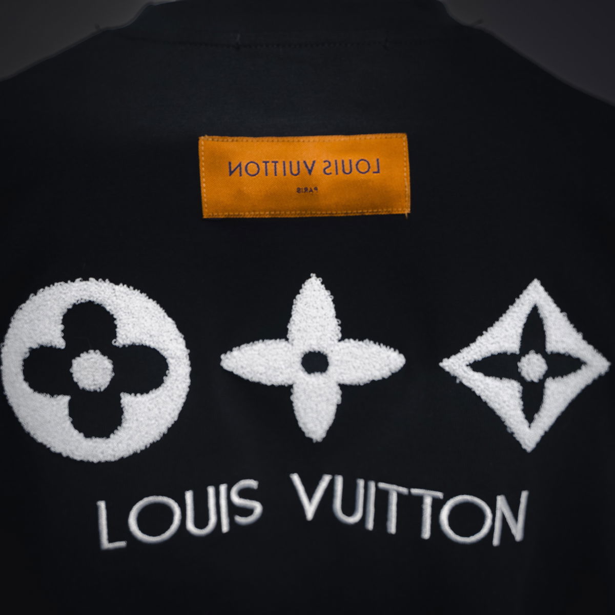 Camiseta de manga corta con bordado de toalla y eslogan de tres flores.